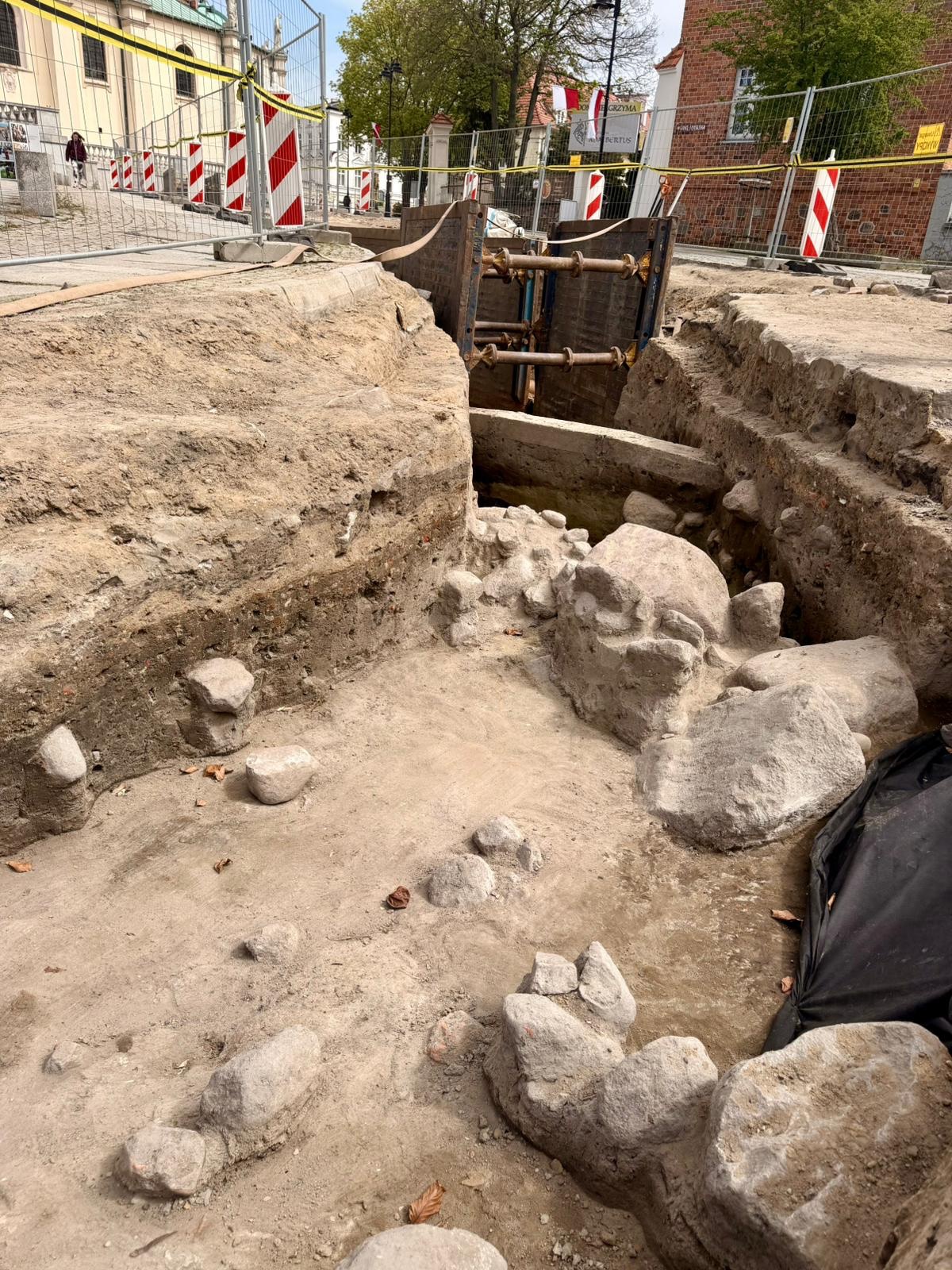 Realizacja robót została czasowo ograniczona w związku z ujawnieniem licznych znalezisk archeologicznych, które wymagają szczegółowych badań i dokumentacji. Prowadzenie prac budowlanych uzależnione jest obecnie od postępu prac archeologicznych.