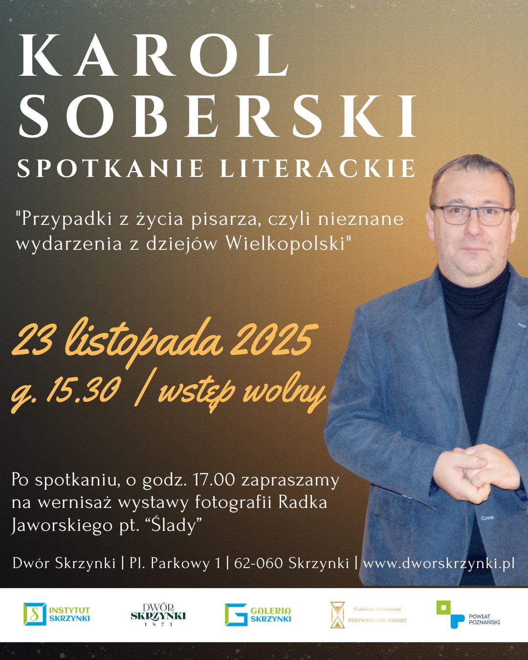 Już w najbliższą niedzielę, 23 listopada o godz. 15.30 we Dworze Skrzynki (gmina Stęszew) odbędzie się spotkanie z Karolem Soberskim, pisarzem, dziennikarzem i regionalistą. Temat spotkania brzmi: „Przypadki z życia pisarza, czyli nieznane wydarzenia z dziejów Wielkopolski”. Wszystkich miłośników historii Wielkopolski, skarbów, sekret i zagadek zapraszamy na wyjątkowe popołudnie do Dworu Skrzynki!