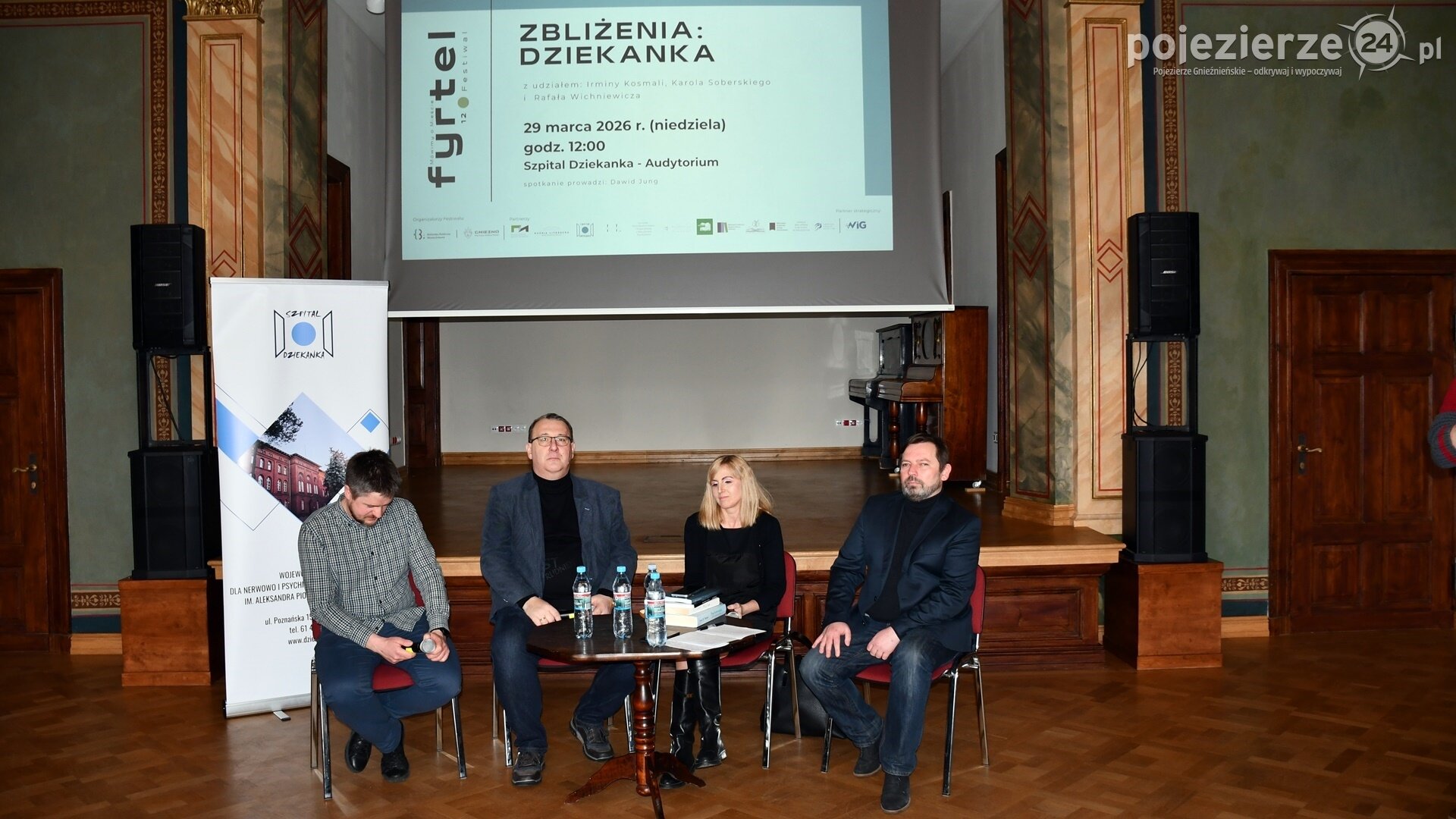 Dzisiaj w samo południe w sali audytorium Wojewódzkiego Szpitala dla Nerwowo i Psychicznie Chorych „Dziekanka” w Gnieźnie odbył się panel dyskusyjny z udziałem autorów, którzy w swojej twórczości lub pracach badawczych inspirowali się historią słynnego zakładu leczniczego „Dziekanka”. Rozmowa, którą prowadził Dawid Jung, w głównej mierze dotyczyła niemieckiej zbrodni dokonanej w czasie II wojny światowej - w ramach akcji T4 - na pacjentach gnieźnieńskiej „Dziekanki”. W panelu uczestniczyli: Irmina Kosmala, Karol Soberski i Rafał Wichniewicz. Spotkanie odbyło się w ramach dwunastej edycji Festiwalu „Fyrtel”.