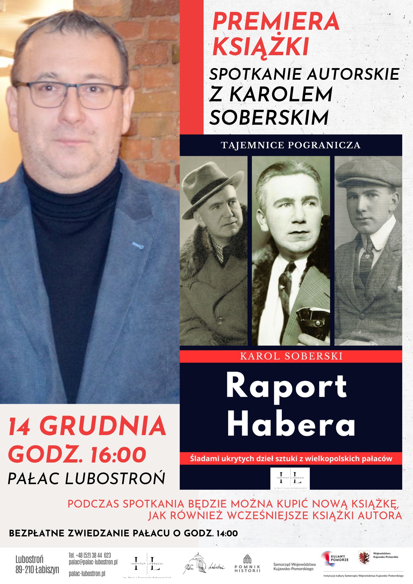 Uroczysta premiera książki odbędzie się w niedzielę, 14 grudnia o godz. 16.00 w Pałacu Lubostroń niedaleko Żnina. Spotkanie poprowadzi Arkadiusz Gaca, regionalista i przewodnik turystyczny. W trakcie spotkania będzie można kupić nową książkę, jak i wcześniejsze publikacje autora.