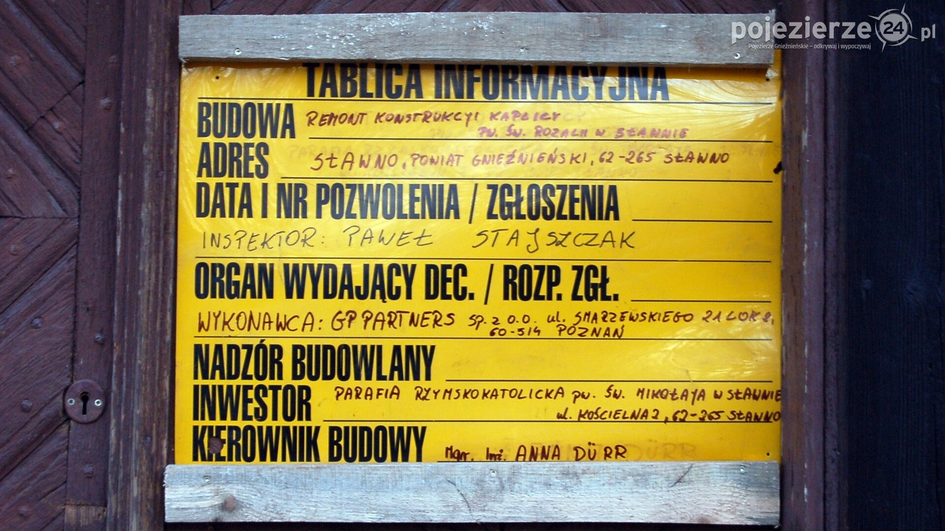 Rozpoczął się generalny remont zabytkowego kościółka pw. św. Rozalii w Sławnie (gmina Kiszkowo). Drewniana kaplica pw. św. Rozalii wybudowana w 1785 roku z fundacji księdza Józefa Sztolzmana, ze względu na swe unikalne walory historyczne i architektoniczne została wpisana do rejestru zabytków w 1968 roku pod numerem 380/A. Od wielu lat świątynia popadała w ruinę, stąd jej remont był sprawą bardzo pilną. Cały czas potrzebne są także środki finansowe na jej odnowienie.