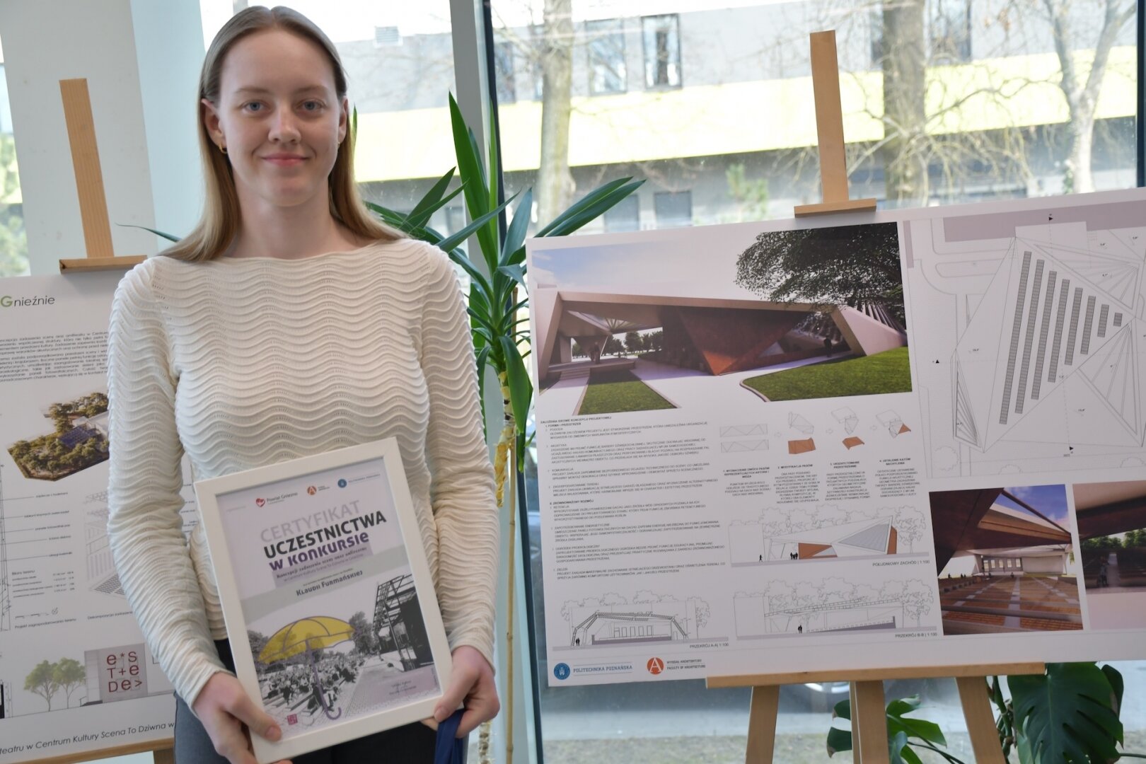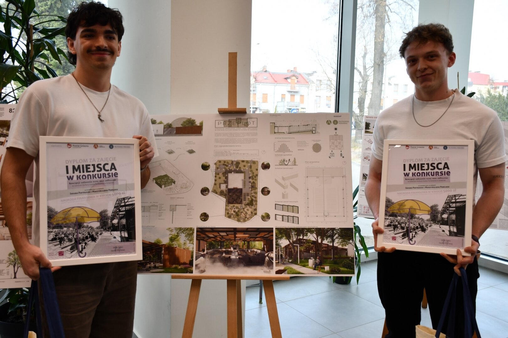 Studenci Wydziału Architektury Politechniki Poznańskiej Jakub Pietruszka i Maksymilian Pawlak zwyciężyli w konkursie na najlepszą koncepcję zadaszenia sceny oraz amfiteatru w Centrum Kultury „Scena to dziwna” w Gnieźnie. Laureaci otrzymali nagrodę pieniężną w wysokości 5 tys. zł.