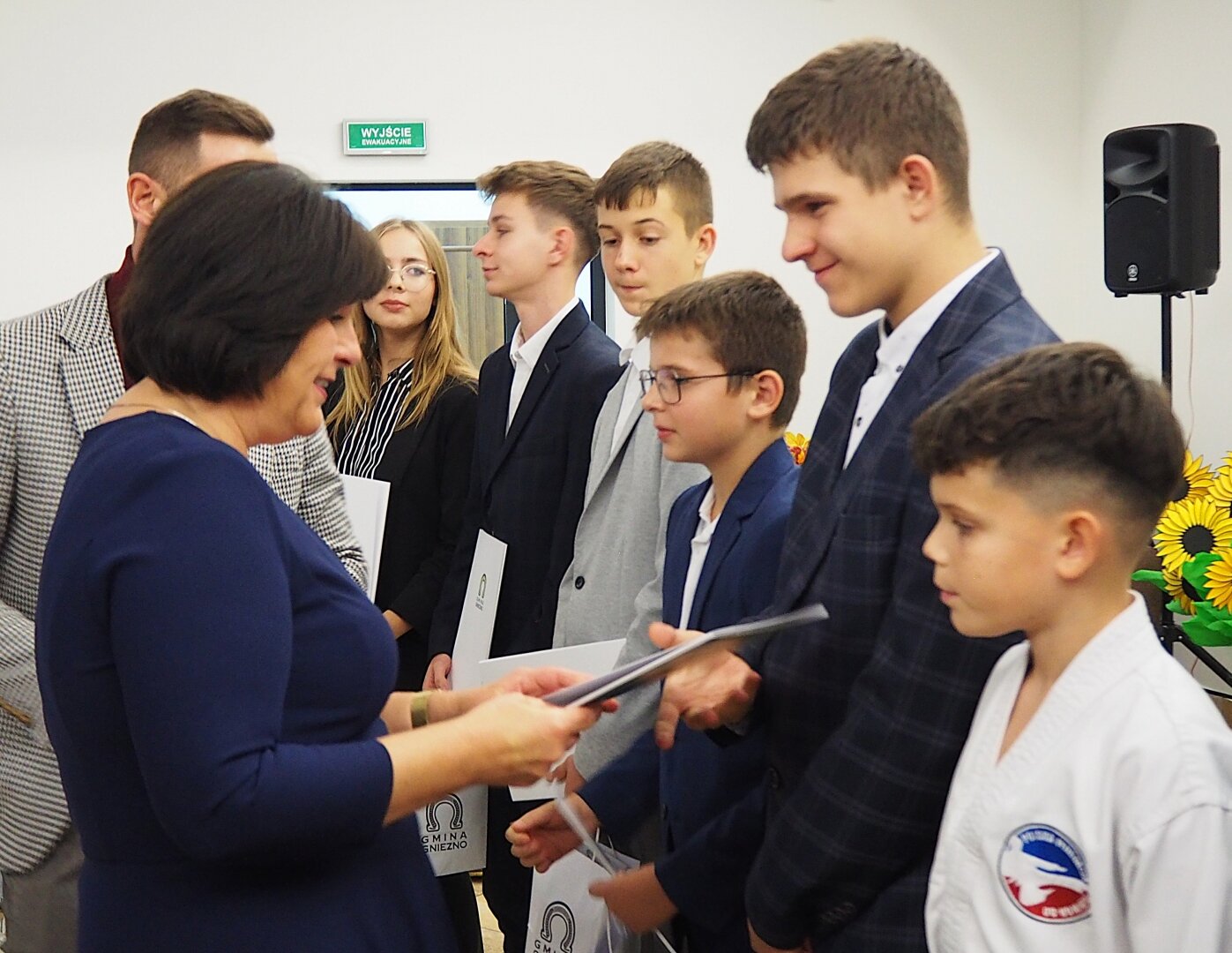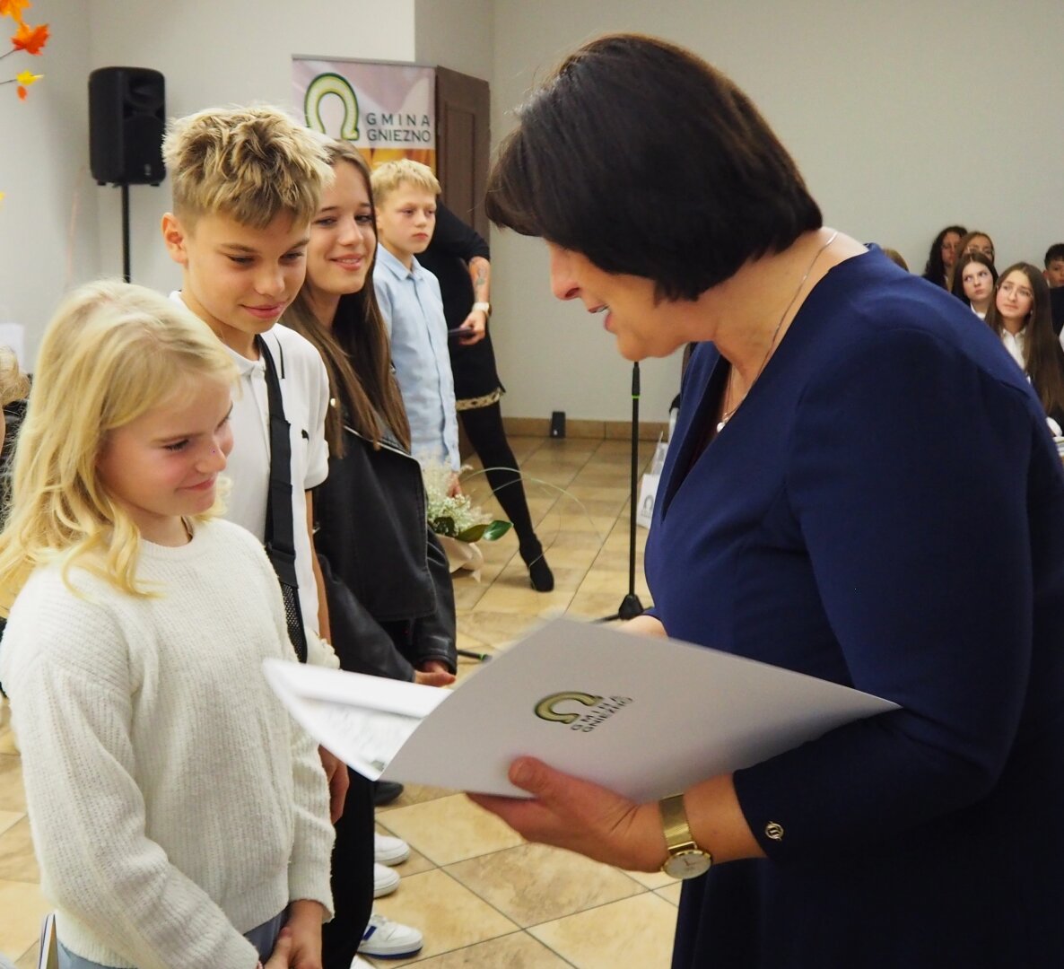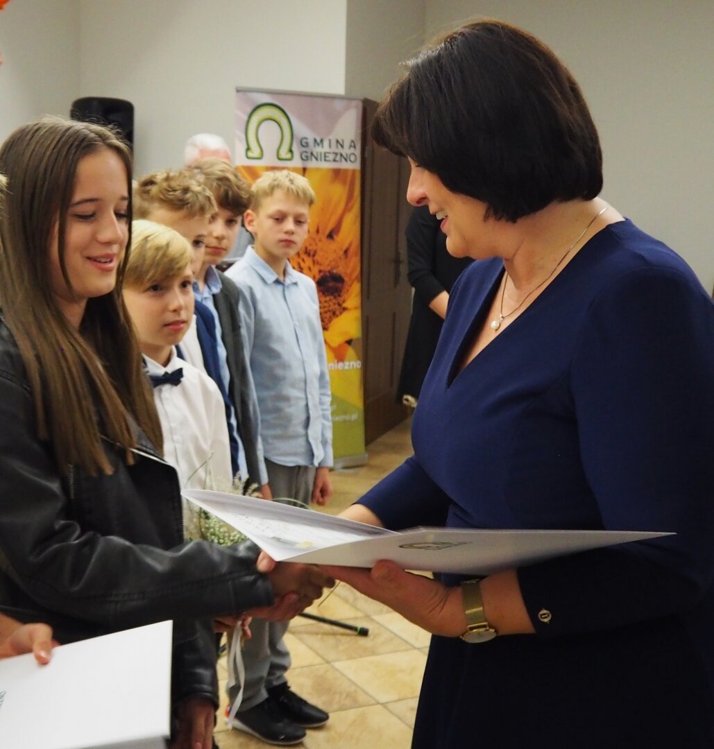 Ponadto przyznanych zostało aż 19 indywidualnych nagród Wójt Gminy – za szczególne osiągnięcia sportowe, naukę i aktywność artystyczną. - Te liczby cieszą – ale jeszcze bardziej cieszy to, co za nimi stoi. Stypendia i nagrody to nie tylko wyróżnienia – to wyraz naszego szacunku i uznania dla pracy uczniów, ich ambicji i konsekwencji. To także symbol troski naszej gminy o rozwój młodych ludzi – bo wierzymy, że inwestowanie w edukację i pasje młodzieży to najlepsza inwestycja w przyszłość. Nagrody i stypendia to także forma podziękowania – za to, że swoją postawą budujecie pozytywny wizerunek naszej gminy. To dzięki Wam możemy mówić o młodym pokoleniu z nadzieją i wiarą w przyszłość. Dziękuję również Wam, drodzy nauczyciele i wychowawcy – to Wasze zaangażowanie, cierpliwość i serce wkładane w edukację są fundamentem sukcesów naszych uczniów. Bez Waszego wsparcia wiele z tych osiągnięć nie byłoby możliwych. Rodzicom gratuluję tak wspaniałych dzieci – Wasza obecność, codzienne wsparcie i poświęcenie są nieocenione. Dziękuję wszystkim, którzy wspierają naszą młodzież – nauczycielom, wychowawcom, trenerom i rodzicom – powiedziała Maria Suplicka Wójt Gminy Gniezno.