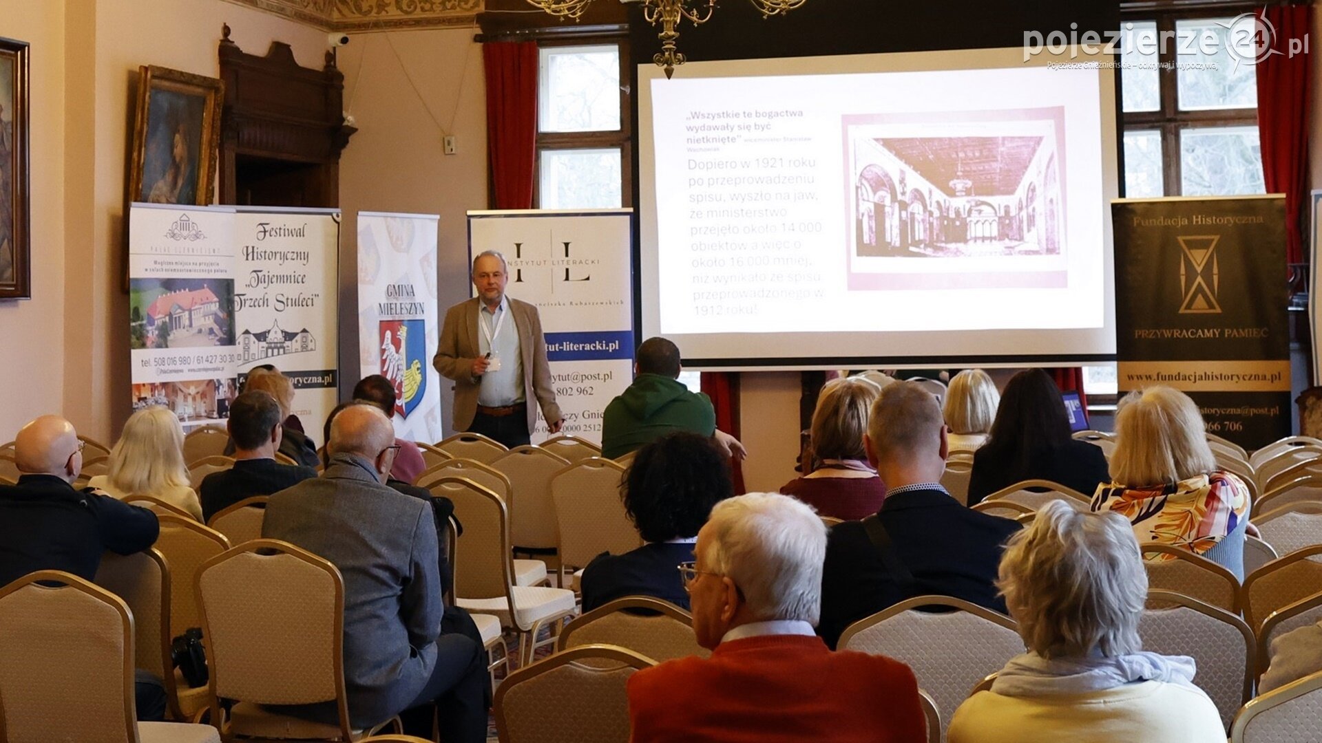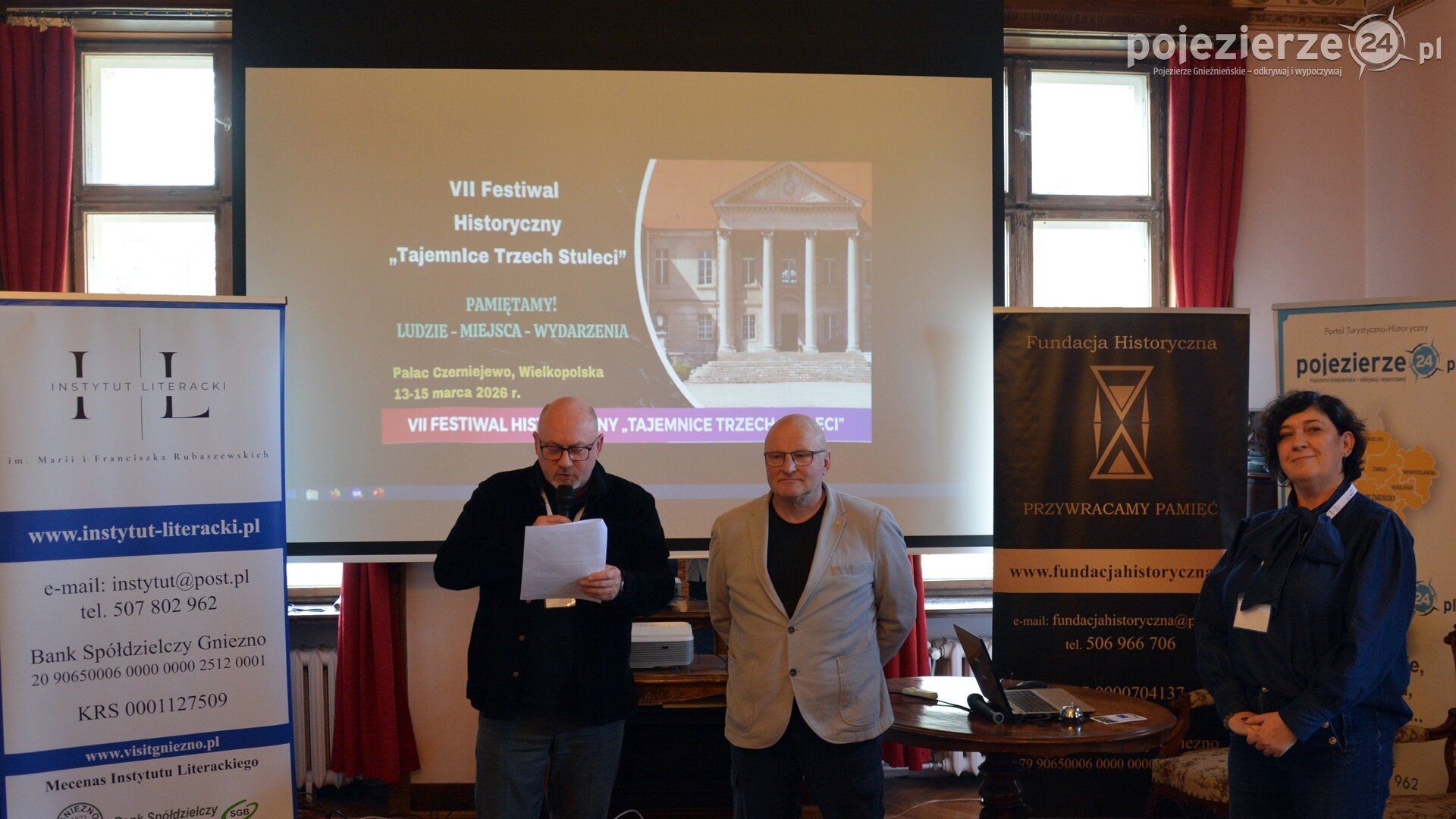 Sobota był kulminacyjnym dniem VII Festiwalu Historycznego „Tajemnice Trzech Stuleci”, który od 13 do 15 marca odbywał się w pałacu w Czerniejewie. W tym dniu do pałacu przybyły rzesze uczestników, którzy - oprócz prelekcji - chętnie odwiedzali Kiermasz Książek i Pchli Targ oraz oglądali wystawę zabytkowych pojazdów i aparatów. Nie brakowało też wielu kuluarowych rozmów z prelegentami i gośćmi Festiwalu zaproszonych przez jego organizatora Karola Soberskiego. W tym dniu było wszystko to, co interesuje miłośników historii: Złoty Pociąg, kp. Władysław Raginis, Zamek Poznański, Sarmacja oraz hr. Ignacy Mielżyński i hr. Albin Węsierski. Dzisiaj relacja z drugiego dnia Festiwalu.