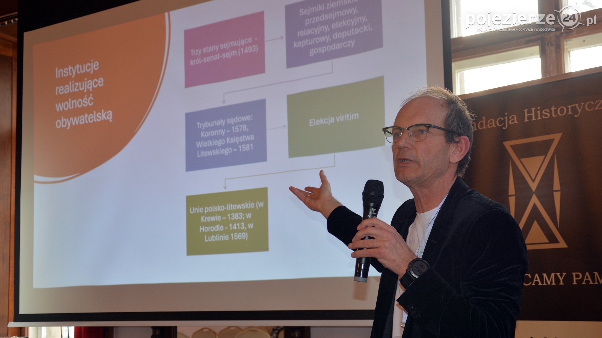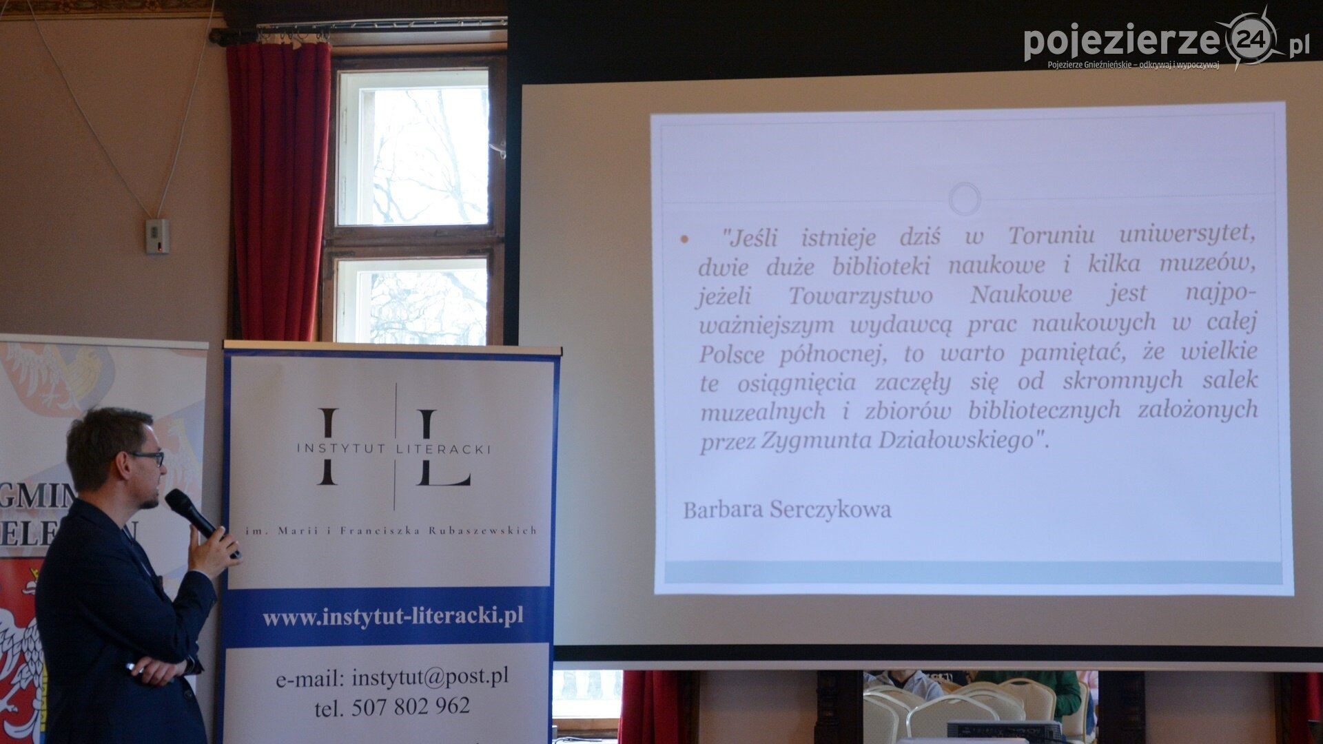 Pierwszy sobotni blok prelekcji rozpoczął się o godz. 9.30 od wykładu Marcina Perlińskiego (prawnika, miłośnika turystyki i lokalnej historii, kolekcjonera pamiątek mających związek z jego „małą Ojczyzną”, pt.„Wielkopolanin hr. Ignacy Mielżyński – pogromca bolszewików pod Brodnicą”.
