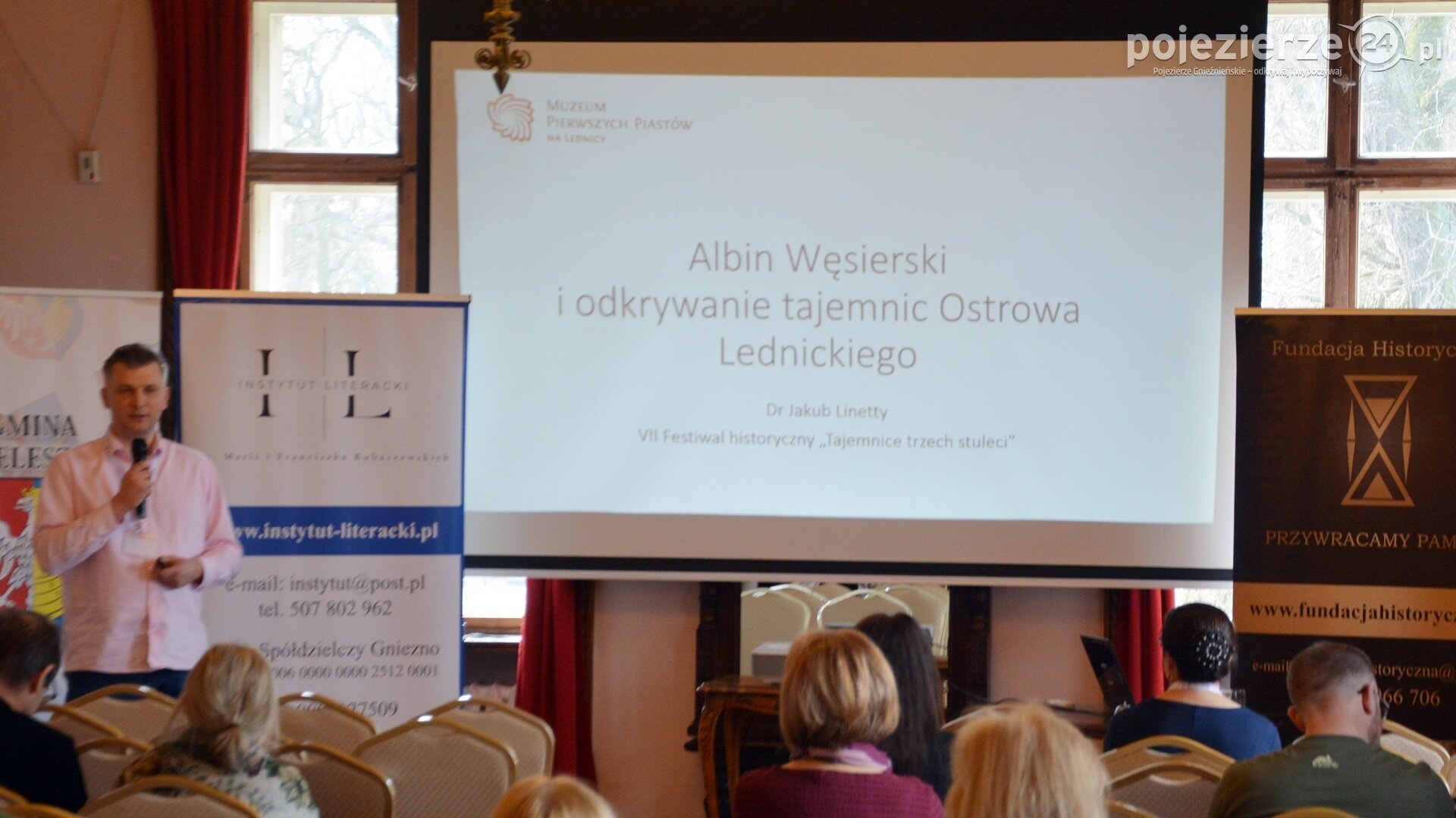 Po nim dr Jakub Linetty (archeolog i historyk, pracownik Muzeum Pierwszych Piastów na Lednicy, absolwent Uniwersytetu im. Adama Mickiewicza w Poznaniu, członek Komisji Archeologicznej przy Polskiej Akademii Nauk (odział w Poznaniu) wygłosił prelekcje pt. „Albin Węsierski i odkrywanie tajemnic Ostrowa Lednickiego”.