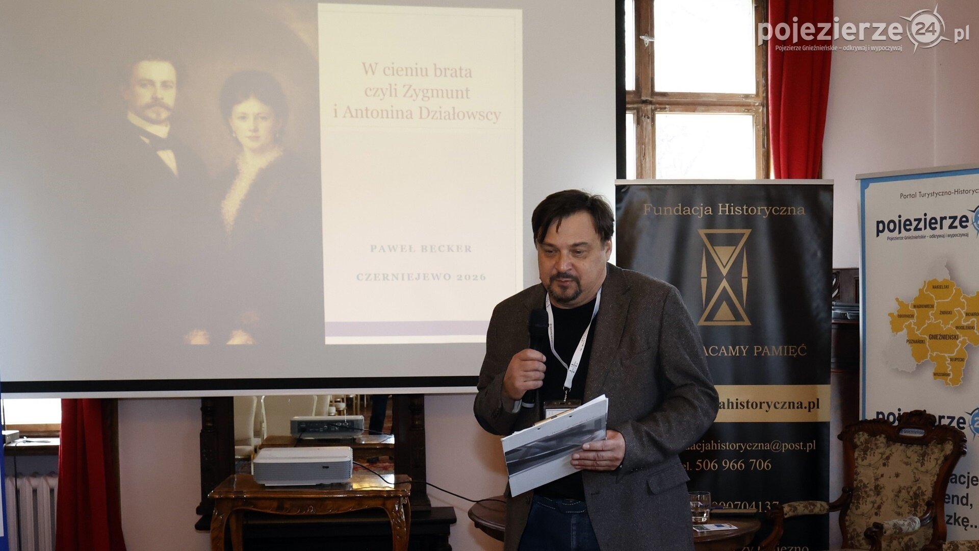 Na początek Paweł Becker (historyk, pisarz, absolwent Uniwersytetu im. Mikołaja Kopernika w Toruniu i Szkoły Wyższej im. Pawła Włodkowica w Płocku. Autor kilku opracowań i programów telewizyjnych dotyczących historii regionu Wąbrzeźna i Kujawsko-Pomorskiego) przybliżył historię pt. „W cieniu brata czyli Zygmunt i Antonina Działowscy”.