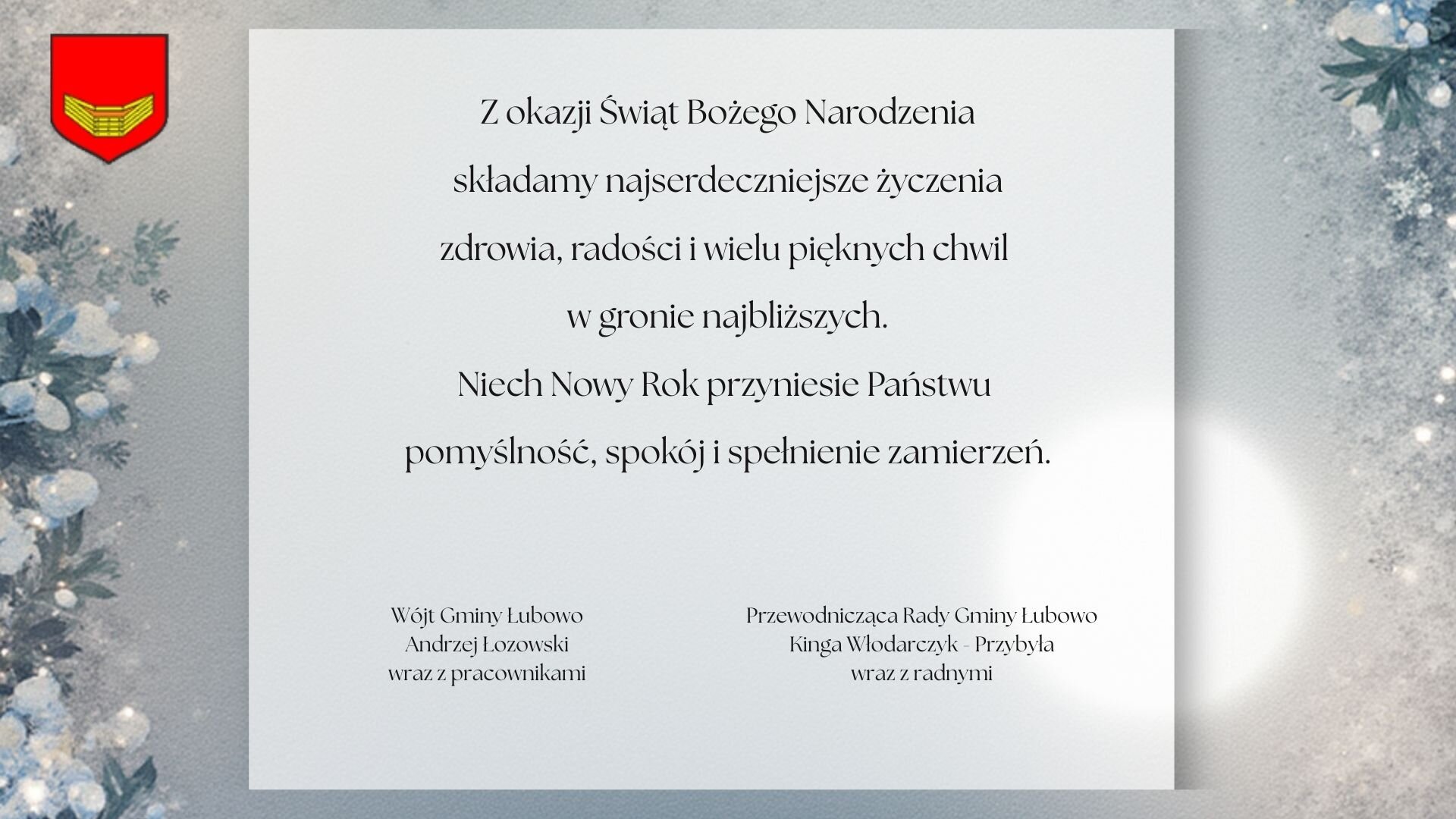 Życzenia z okazji Świąt Bożego Narodzenia i Nowego Roku składają: