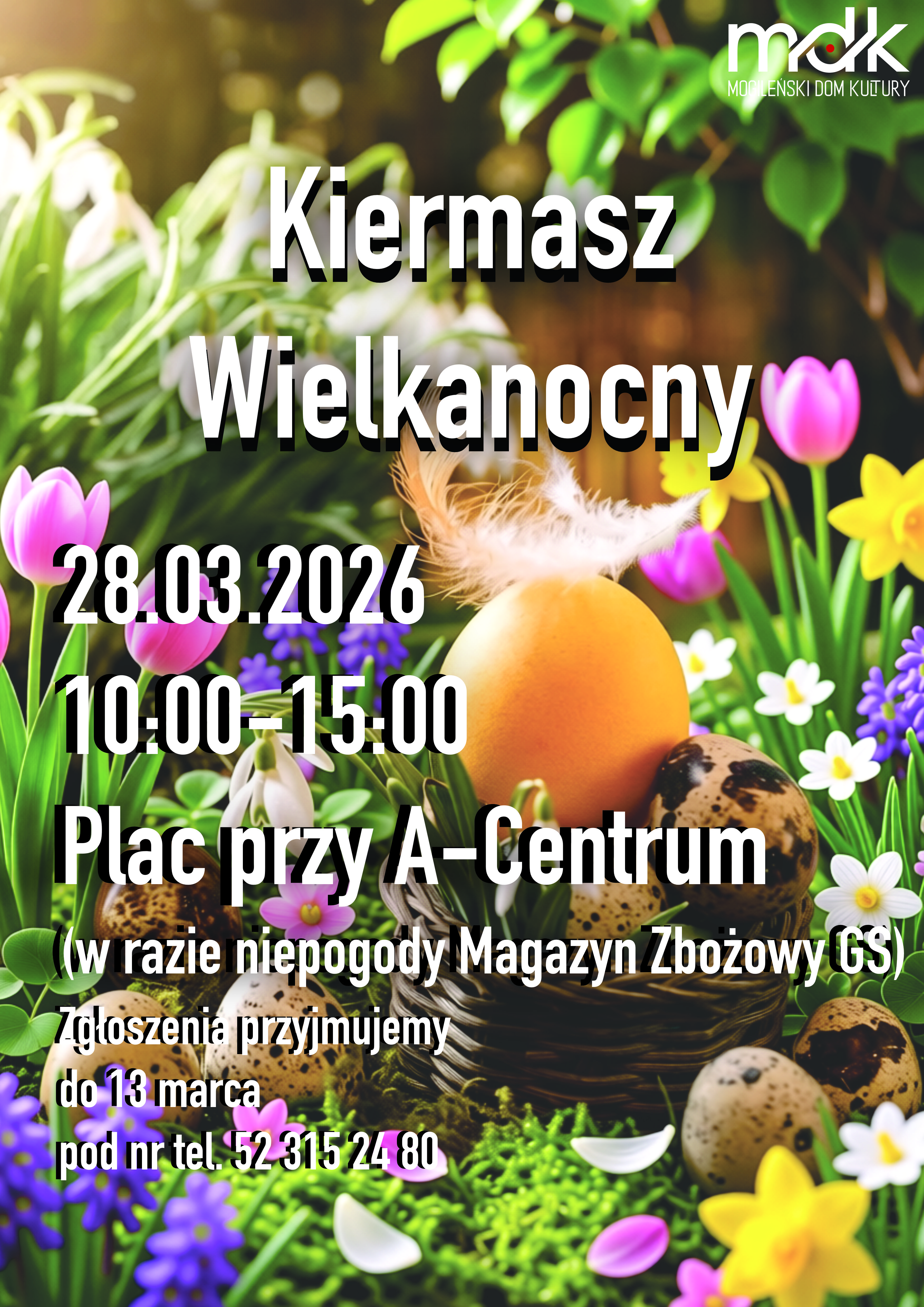 Mogileński Dom Kultury zaprasza mieszkańców regionu na wyjątkowy Kiermasz Wielkanocny, który odbędzie się 28 marca 2026 roku w godzinach 10.00 – 15.00 na placu przy A-Centrum. Wydarzenie będzie okazją do wspólnego celebrowania nadchodzących Świąt Wielkanocnych w atmosferze tradycji, rękodzieła i lokalnej integracji.