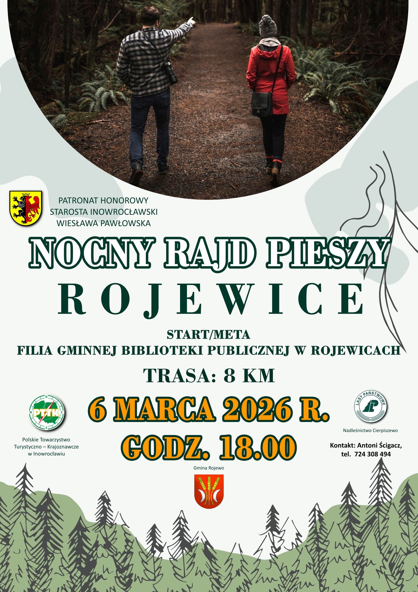 Uczestnicy wyruszą 6 marca o godz. 18.00 sprzed filii Biblioteki Gminnej w Rojewicach. Długość trasy wynosi około 8 km. Organizatorami rajdu są Powiat Inowrocławski, Oddział PTTK w Inowrocławiu oraz Nadleśnictwo Cierpiszewo.
