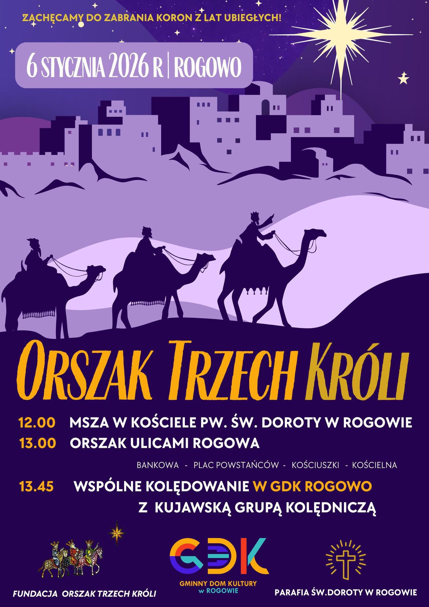 Gminny Dom Kultury w Rogowie zapraszamy wszystkich mieszkańców oraz gości na Orszak Trzech Króli, który 6 stycznia, po raz trzeci przejdzie ulicami Rogowa!