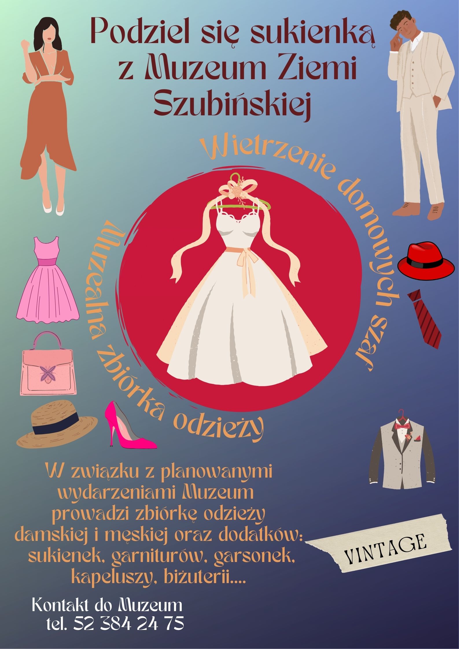 Akcja zbiórki sukienek, garniturów damskich i męskich, dodatków związana jest ze zbliżającą się Nocą Muzeów 2026, która planowana jest na sobotę 16 maja od godz. 17.00 w Muzeum Ziemi Szubińskiej.