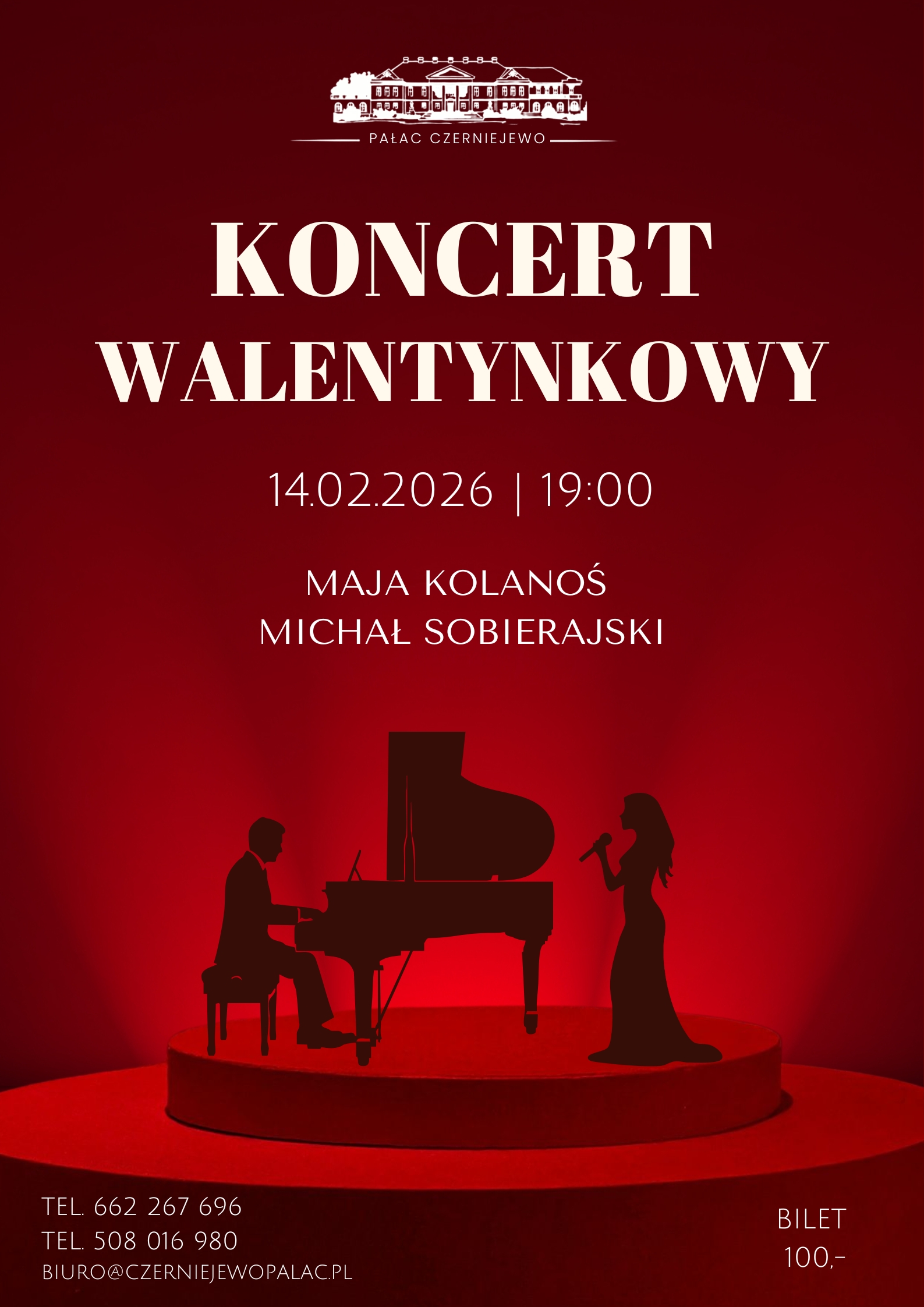 Informacje: tel. 662 267 696 lub 508 016 980; e-mail biuro@czerniejewopalac.pl