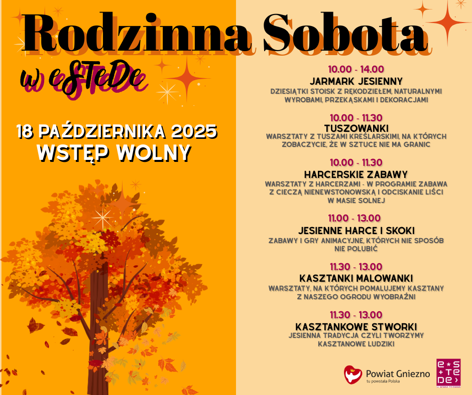 Po wakacyjnej przerwie Rodzinna Sobota znów zagości w progach Centrum Kultury „Scena to dziwna” w Gnieźnie. Już 18 października spotkamy się przy ul. Roosevelta 42, aby wspólnie bawić się w jesiennej aurze.