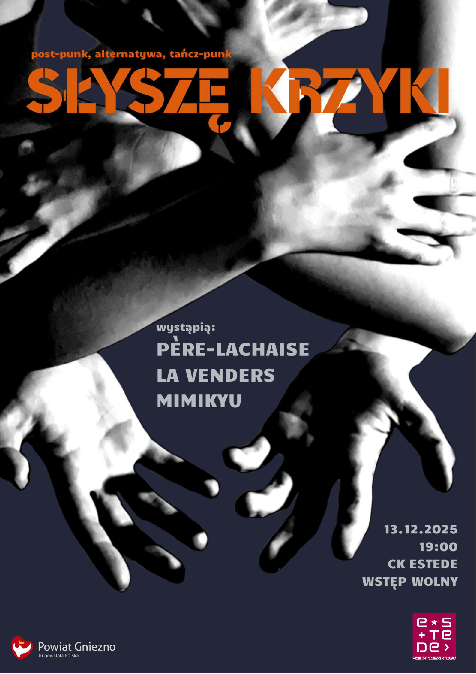 Koncertowe zakończenie roku w Centrum Kultury „Scena to dziwna” ponownie przypadnie zespołowi Père-Lachaise. W ramach wydarzenia „Słyszę Krzyki” gnieźnieńska kapela wystąpi wraz z La Venders i Mimikyu 13 grudnia o godz. 19.00 w CK eSTeDe. Wstęp wolny.