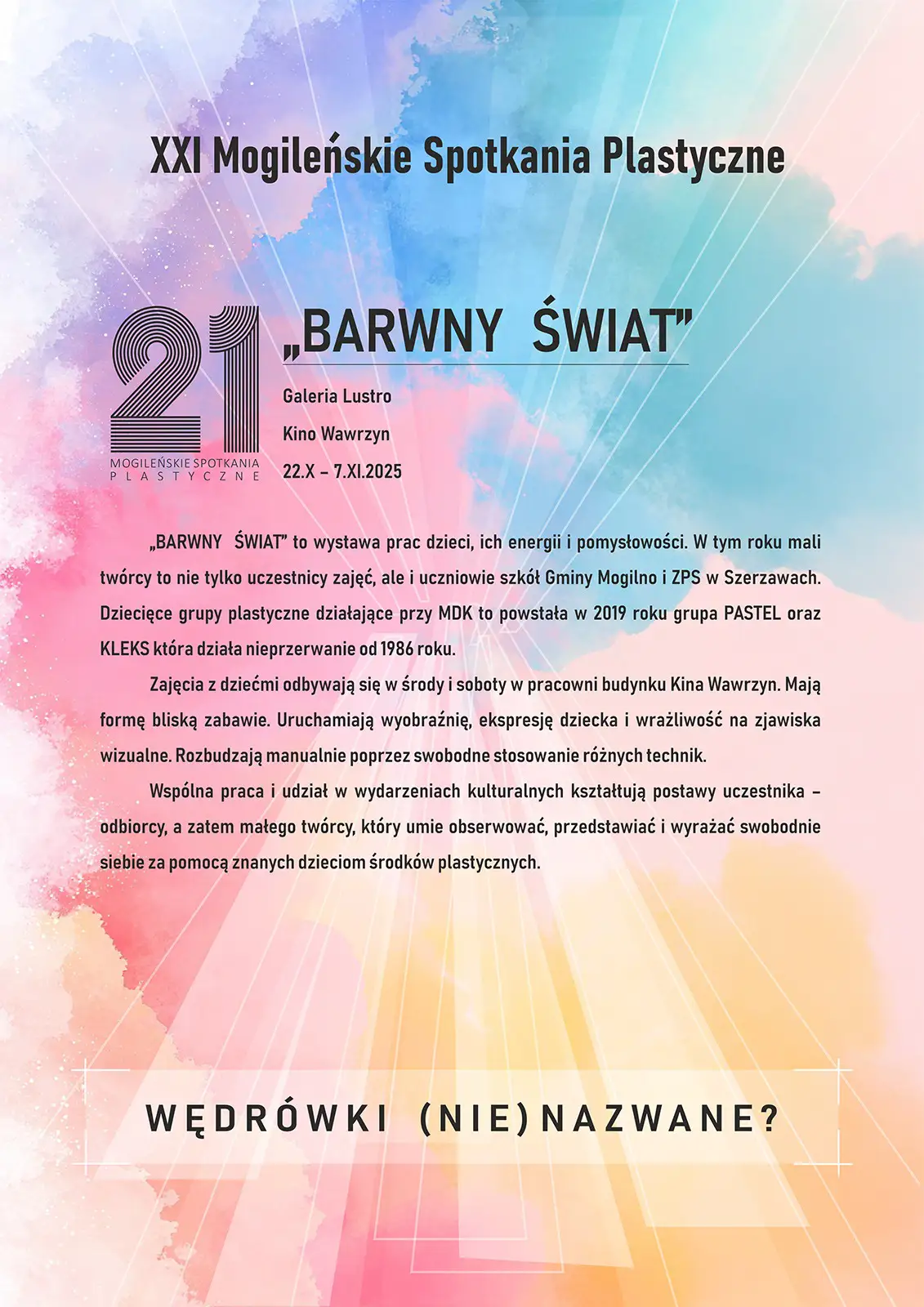 Organizatorzy zapraszają wszystkich mieszkańców Mogilna i okolic do wspólnego podziwiania dziecięcej kreatywności. „Barwny Świat” to okazja, by spojrzeć na świat oczami najmłodszych – pełnymi barw, emocji i radości.