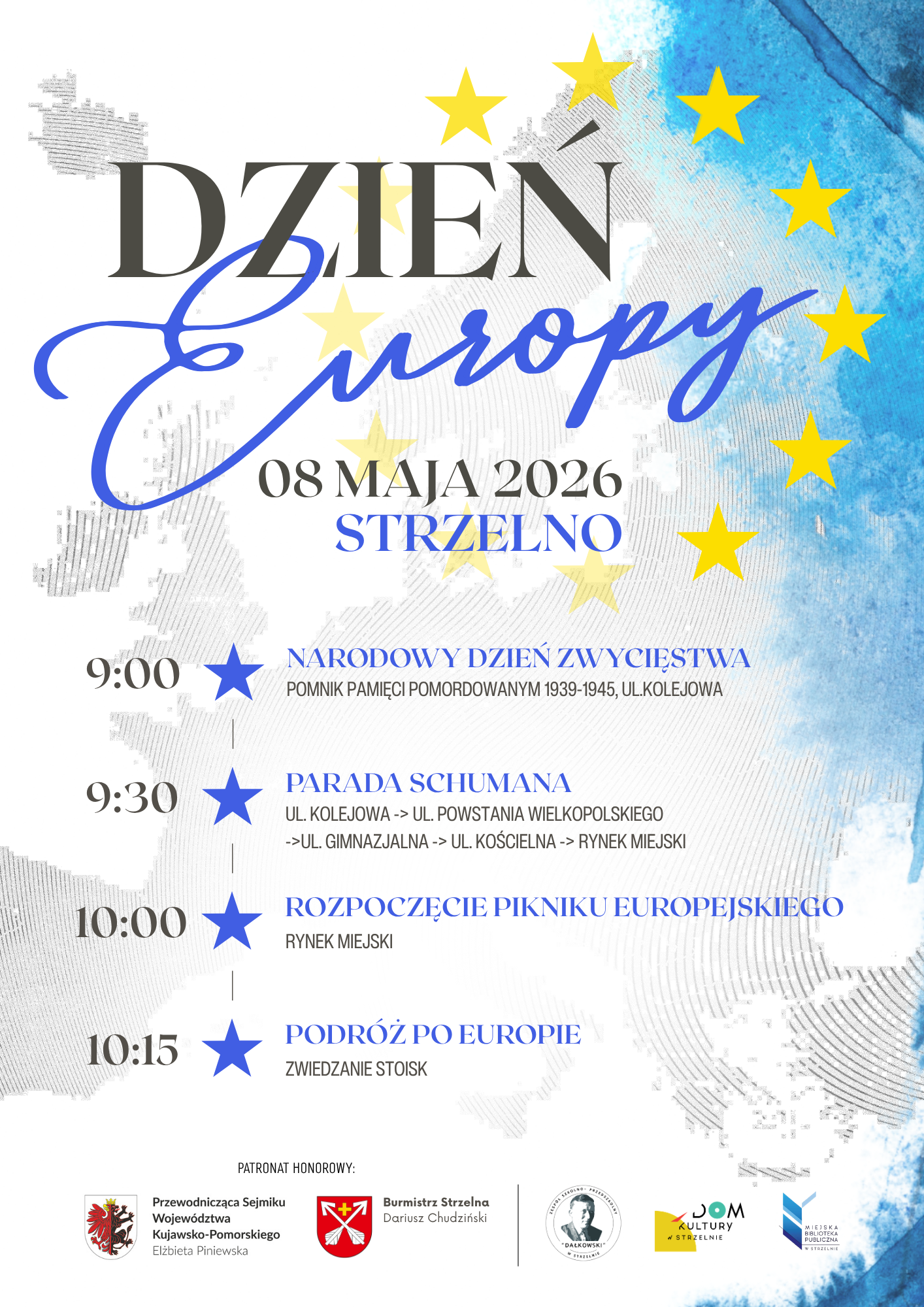 Dom Kultury w Strzelnie zaprasza na „Dzień Europy”, który odbędzie się 8 maja 2026 roku w Strzelnie.